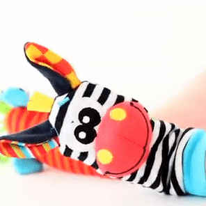 These colorful smiling cute animals will entice your baby to touch, grab and look at them. It will help to develop their hand, foot and eye co-ordination with multiple textures that help your baby explore and develop their sense of touch. The wrist rattles are made of comfortable, soft velour fabric that attaches easily to your baby’s wrists or ankles.